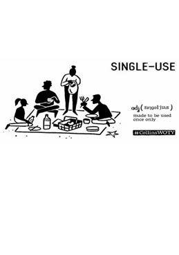 De acordo com a Collins a utilização da palavra single-use aumentou quatro vezes desde 2013 e está relacionada com o movimento global de conscientização do uso e do impacto no meio ambiente de produtos plásticos que, na maioria das vezes, são descartados de forma imprópria.