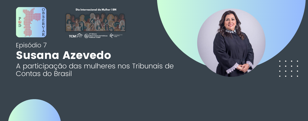 No mês do Dia Internacional da Mulher, esta edição do Pod Observar, o podcast do Observatório de Políticas Públicas (OPP) do Tribunal de Contas do Município de São Paulo (TCMSP), vai conversar com a conselheira-presidente do Tribunal de Contas do Estado de Sergipe (TCE-SE), Susana Maria Fontes de Azevedo Freitas. Uma das poucas mulheres que chegaram à Presidência de uma das 33 Cortes de Contas do Brasil, ela irá falar da condição e participação das mulheres no sistema Tribunais de Contas, um ambiente ainda muito dominado pela presença masculina.