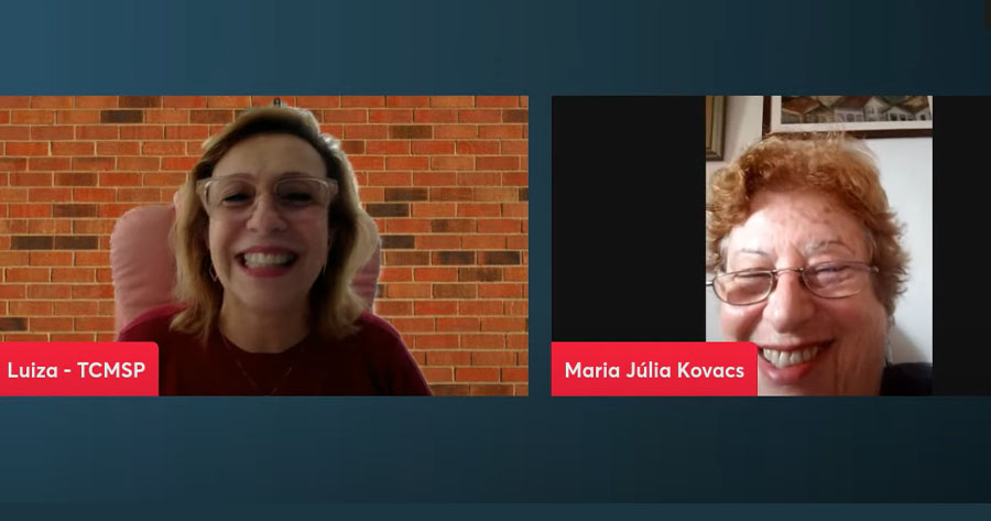 Para falar sobre um assunto sensível, como o processo do luto e suas especificidades, o programa Ecos do Comportamento recebeu terça-feira (28/05) a psicóloga Maria Júlia Kovács, professora do Instituto de Psicologia da Universidade de São Paulo (USP) e membro fundador do Laboratório de Estudos sobre a Morte. O evento foi apresentado ao vivo e teve transmissão pelo canal do YouTube da Escola Superior de Gestão e Contas Públicas (EGC) do Tribunal de Contas do Município de São Paulo (TCMSP).