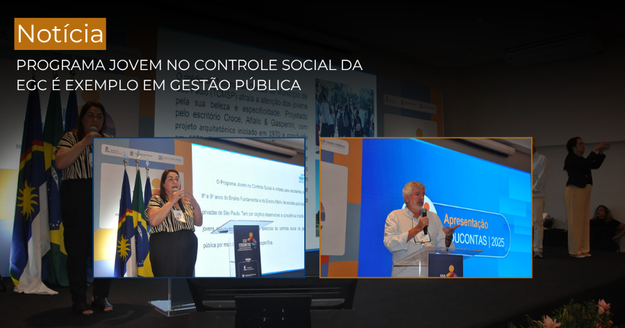 Na oportunidade, o Programa Jovem no Controle Social (PJCS), instituído pela da Escola Superior de Gestão e Contas Públicas do TCMSP, foi apresentado como exemplo de intercâmbio de boas práticas a ser seguido no âmbito dos painéis temáticos. Os representantes da EGC, Gilson Piqueras Garcia e Samira Saleh, atraíram a atenção de grande número de participantes do Educontas ao explicar detalhes do PJCS, que tem por objetivo promover a participação cidadã e capacitar os estudantes do 8º e 9º anos das escolas públicas e privadas para compreender a gestão dos gastos públicos.